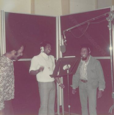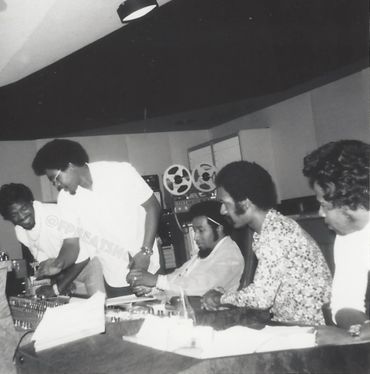 ..... Early 1974, Freddie Perren in the Motown studios, recording tracks for "Do It Baby" album with engineer Art Stuart and Freddie's mom, Queen Esther Perren, (visiting from New Jersey).